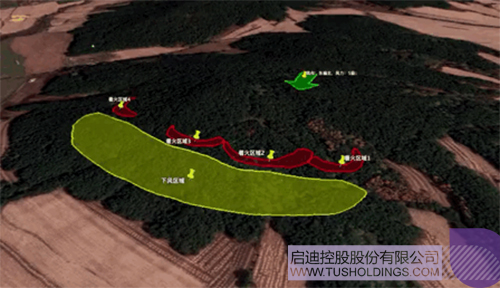 森林火情發(fā)生時,火勢兇猛,人員無法靠近,救援人員難以迅速掌握整個火場形勢,因此在制定救援方案上會受到很多約束。如果此時快速獲得火場態(tài)勢圖,即集合三維地理信息、風(fēng)力風(fēng)向氣象信息、火情火勢信息、人員分布信息等重要因素于一體,則可以全面掌握整體情況。風(fēng)向突變是造成森林消防員意外死亡的重要因素,通過態(tài)勢圖可以評估下風(fēng)方向危險區(qū)域,推演出火情走向趨勢,根據(jù)火場附近村莊或建筑分布制定出疏散和撲打計劃,為決策提供及時準(zhǔn)確的信息支撐,同時會在滅火救援上也會減少不必要的犧牲。
