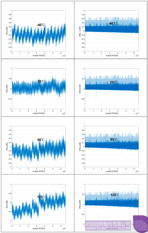 不過,這一格局即將被打破。經過一年多的開發,智毅聚芯成功突破16bit高精度DAC核心技術,產品實測結果顯示,在-40℃~85℃溫度范圍內,積分非線性(INL)小于1LSB,微分非線性(DNL)小于1LSB。在-40℃~125℃溫度范圍內,積分非線性(INL)小于2LSB,微分非線性(DNL)小于1LSB。