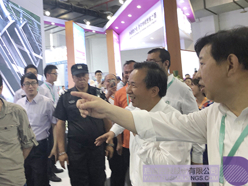 生態(tài)環(huán)保部部長(zhǎng)李干杰(右二)到浦華環(huán)保展區(qū)參觀指導(dǎo)