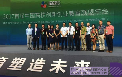 啟迪控股副總裁、啟迪之星董事長(zhǎng)張金生(右六)和啟迪之星創(chuàng)投總經(jīng)理劉博(左六)出席2017首屆中國(guó)高校創(chuàng)新創(chuàng)業(yè)教育聯(lián)盟年會(huì)
