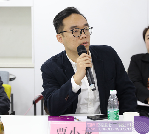 房漢廷副社長(zhǎng)(左二)、劉峰總編輯(右二)座談會(huì)后參觀考察啟迪控股數(shù)字展廳