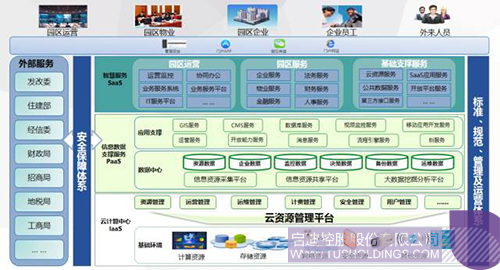 啟迪園區(qū)云以公有云的方式,通過移動(dòng)門戶、PC門戶網(wǎng)站等方式,為用戶提供園區(qū)運(yùn)營、園區(qū)服務(wù)和支撐平臺(tái)。通過云架構(gòu),構(gòu)建覆蓋IaaS、PaaS、SaaS全部三個(gè)服務(wù)層面,集成啟迪控股、合作伙伴、第三方產(chǎn)品和應(yīng)用,為用戶提供全面的服務(wù)。