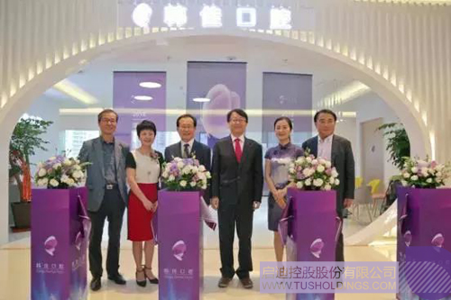 韓國前總理李海瓚(左三)和蘇州啟迪常務(wù)副總經(jīng)理、韓佳口腔董事長華瑩(左二)等