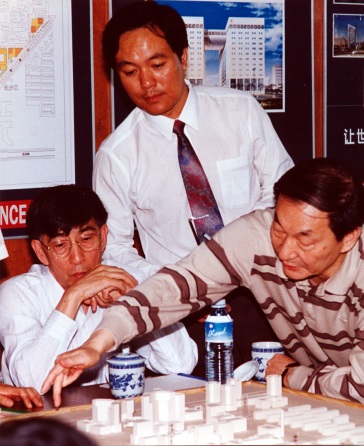 1996年,在清華科技園建設(shè)初期,時(shí)任國(guó)務(wù)院副總理朱镕基在聽(tīng)取時(shí)任清華大學(xué)校長(zhǎng)王大中院士(左),清華科技園發(fā)展中心主任、啟迪控股榮譽(yù)董事長(zhǎng)梅萌(中)的工作匯報(bào)。