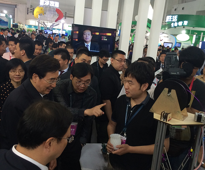 2014年,中共中央政治局委員、北京市市委書記郭金龍到第十七屆科博會清華科技園啟迪之星展區參觀。