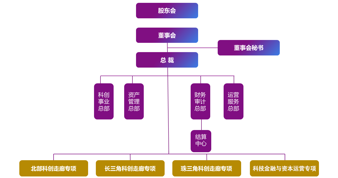 四個業務專項:北部科創走廊專項、長三角科創走廊專項、珠三角科創走廊專項、科技金融與資本運營專項