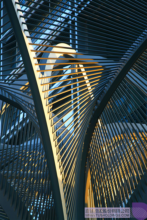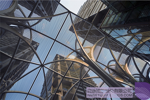 在數字化網絡化時代,建筑亦趨向表現網絡和插件標準化功能模塊的形態(tài)。建筑和凸出地面的形體都被處理成網絡上晶瑩剔透的功能插件,建筑立面單元式縱橫格構體現了人、信息能源在功能塊之間的流動和聯系。