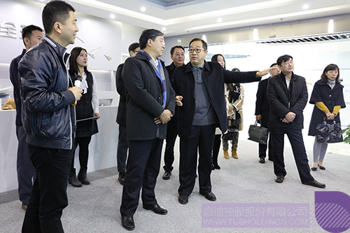 王鳳朝董事長(前排左二)一行參觀啟迪控股數字展廳