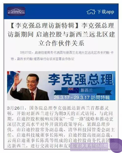 3月29日,《新西蘭先驅(qū)報(bào)》和新西蘭云電視對啟迪控股商務(wù)代表團(tuán)此次赴新西蘭交流訪問,并與新西蘭遠(yuǎn)北區(qū)建立合作伙伴關(guān)系,促成云南騰沖市與遠(yuǎn)北區(qū)建立友好城市關(guān)系進(jìn)行了報(bào)道。