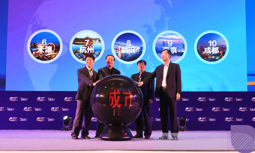 隨后,啟迪創(chuàng)新研究院副院長(zhǎng)楊紅梅解讀《2017中國(guó)城市創(chuàng)新創(chuàng)業(yè)環(huán)境評(píng)價(jià)研究報(bào)告》。清華大學(xué)“一帶一路”戰(zhàn)略研究院執(zhí)行院長(zhǎng)史志欽,啟迪控股榮譽(yù)董事長(zhǎng)梅萌,中國(guó)社會(huì)工作聯(lián)合會(huì)副會(huì)長(zhǎng)何建民,啟迪控股常務(wù)副總裁陳鴻波共同發(fā)布“2017中國(guó)城市創(chuàng)新創(chuàng)業(yè)環(huán)境排行榜”。北京、上海、深圳、廣州、重慶、天津、杭州、武漢、南京、成都成為中國(guó)十大創(chuàng)新創(chuàng)業(yè)城市。