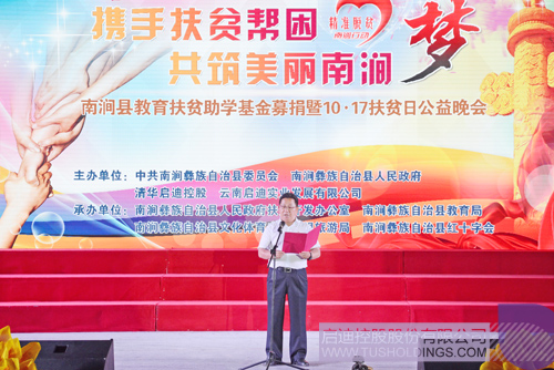 10月16日晚,以“攜手扶貧幫困,共筑美麗南澗夢(mèng)”為主題的南澗縣教育扶貧助學(xué)基金募捐暨10·17扶貧日公益晚會(huì)成功舉辦。大理州扶貧辦主任李德琦,吉向陽、王紹基、沈文榮、黃希里,南澗縣委副書記茶向華、武紹華,清華大學(xué)云南校友會(huì)秘書長(zhǎng)萬林,清華校友、中國(guó)建筑技術(shù)集團(tuán)有限公司副總建筑師呂絮飛,清華大學(xué)掛職干部、南澗縣政府黨組成員金峰,南澗縣西山村委會(huì)第一書記沈正波等出席晚會(huì),陳禹作為啟迪代表受邀參加。