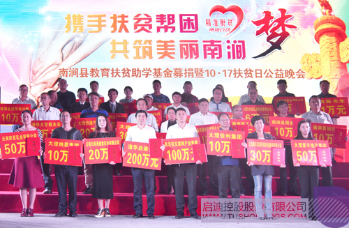 10月16日,由啟迪從清華科技園引入落地南澗的互聯(lián)網(wǎng)創(chuàng)新企業(yè)南澗天焱電子商務(wù)有限公司開館,天焱電子商務(wù)“鄰老板”總部在南澗正式掛牌;依托于此,南澗縣電子商務(wù)體驗(yàn)中心暨電商扶貧服務(wù)平臺(tái)啟動(dòng)運(yùn)營(yíng)。當(dāng)晚,由南澗縣委、縣人民政府和啟迪控股、云南啟迪共同主辦的南澗縣教育扶貧助學(xué)基金募捐暨10·17扶貧日公益晚會(huì)成功舉辦,現(xiàn)場(chǎng)初步募得教育扶貧助學(xué)基金1200萬余元。
